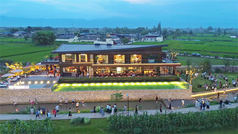 盛夏的玉泉镇桂花村,演绎着一幅动人的亲水画卷:映月泉边,孩童们的欢笑声伴着飞溅的水花回荡;竹林茶舍里,游客们轻啜着泉水冲泡的香茗,品味着慢时光的闲适;不远处“云里小坐·玉泉里”餐厅的落地窗前,游客用镜头收藏了窗外的田园诗意。这个今年7月全新亮相的文旅项目,一经开放便引爆绵竹旅游市场,日均游客量突破8000人次。
